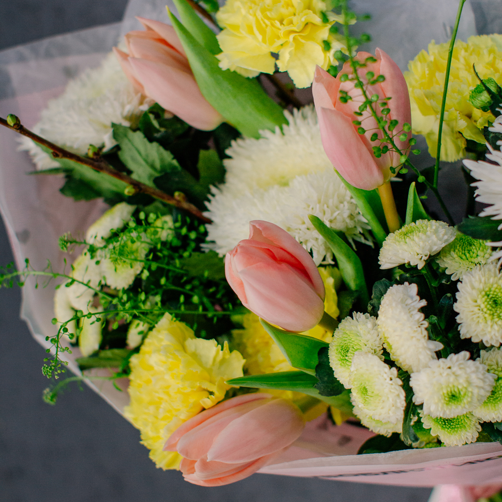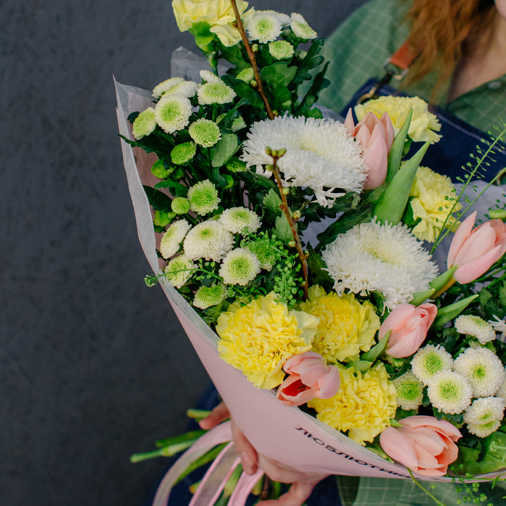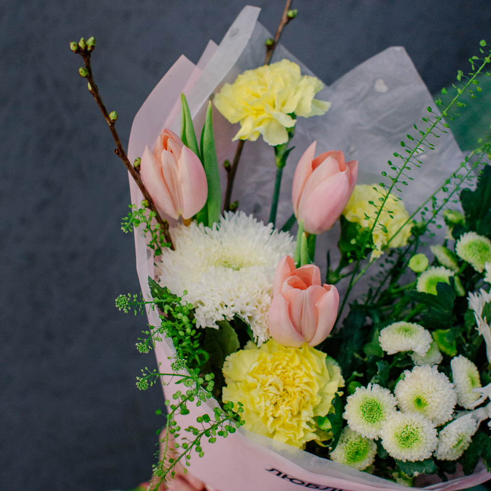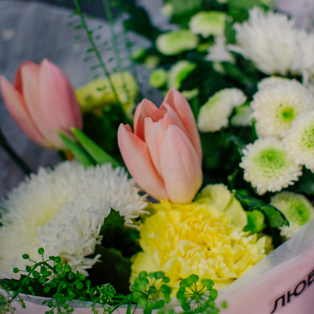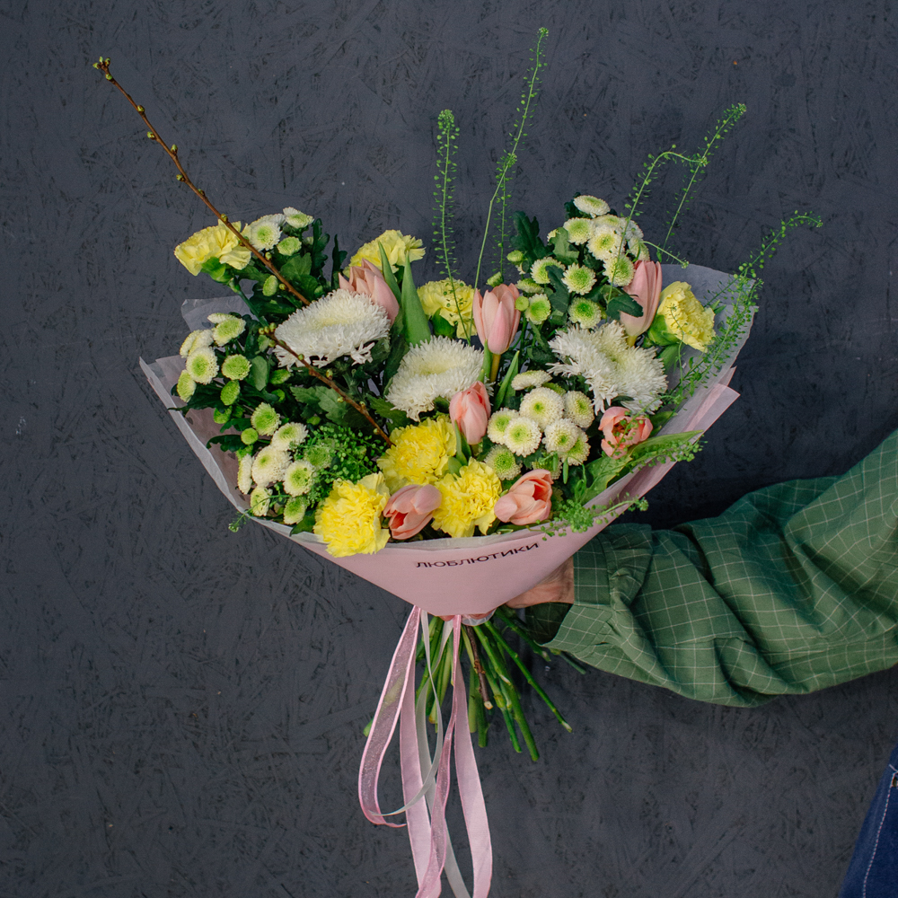 Хотите подарить частичку весны? Этот букет создан из самых нежных и жизнерадостных цветов. В основе композиции - тюльпаны, которые по праву считаются главными вестниками тепла. Их нежная палитра разбудит самые приятные эмоции.