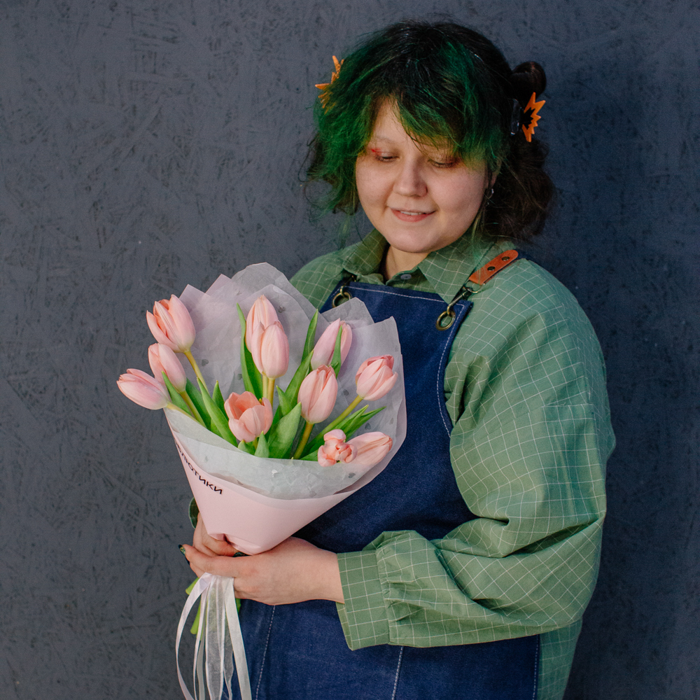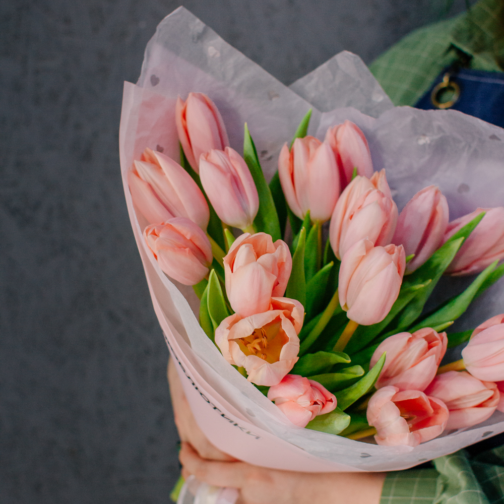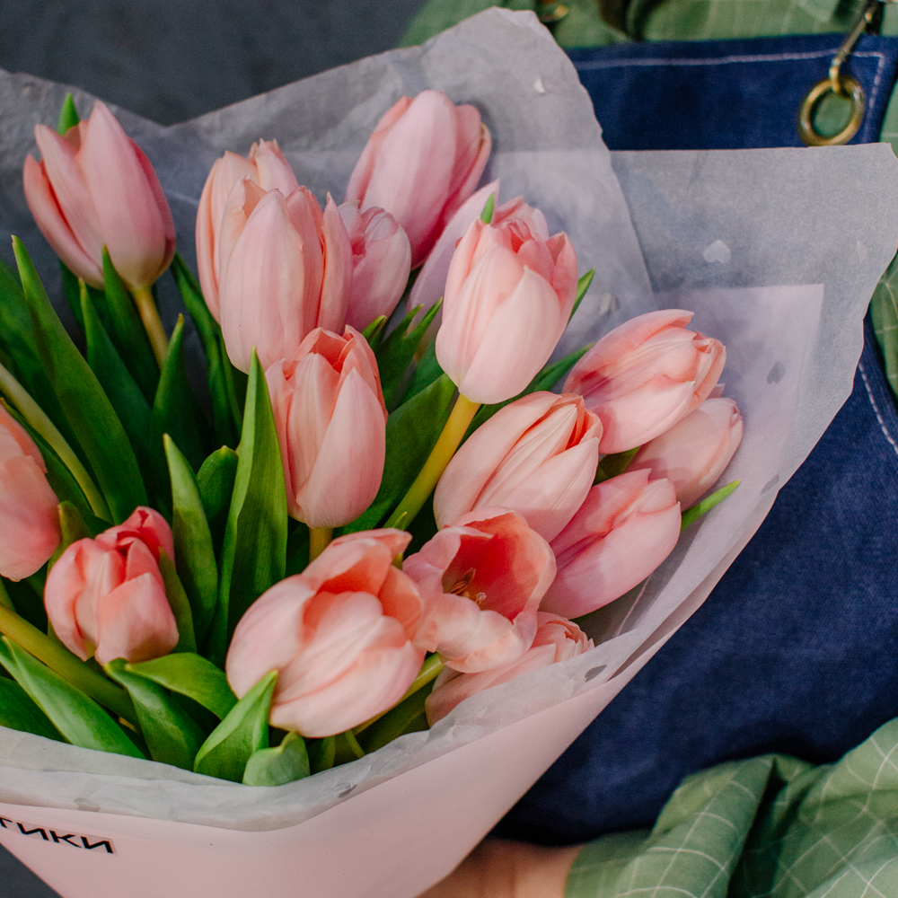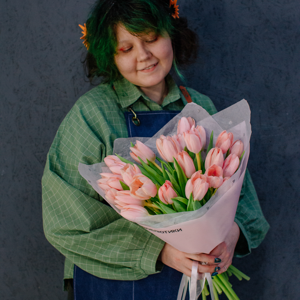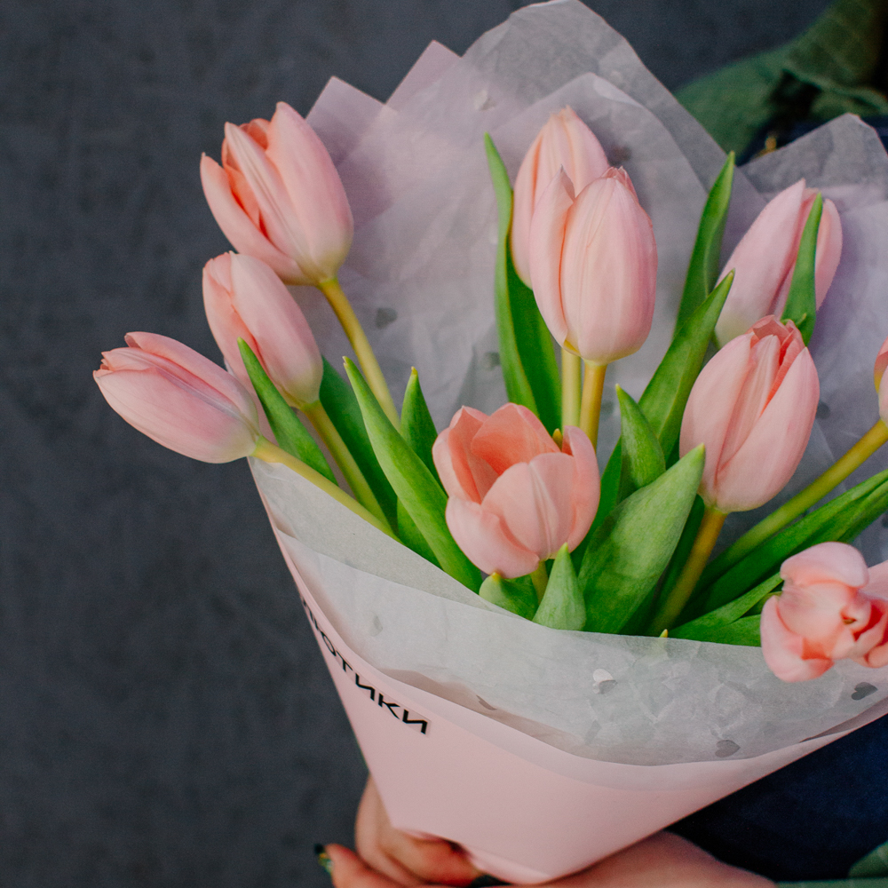 Букеты из тюльпанов при сборке выглядят небольшими, но продолжают расти и раскрываться у получателя дома. Тюльпаны почти не имеют запаха — удобно для аллергиков.