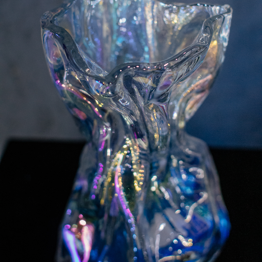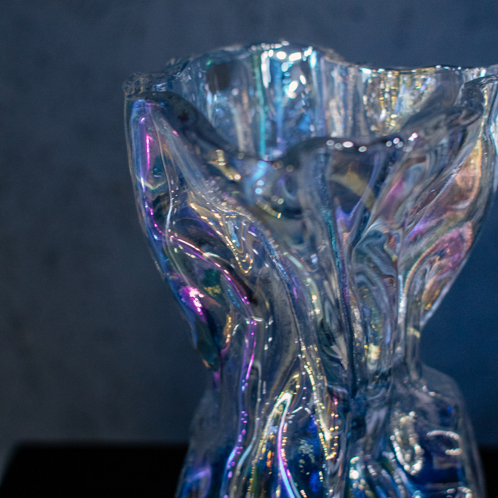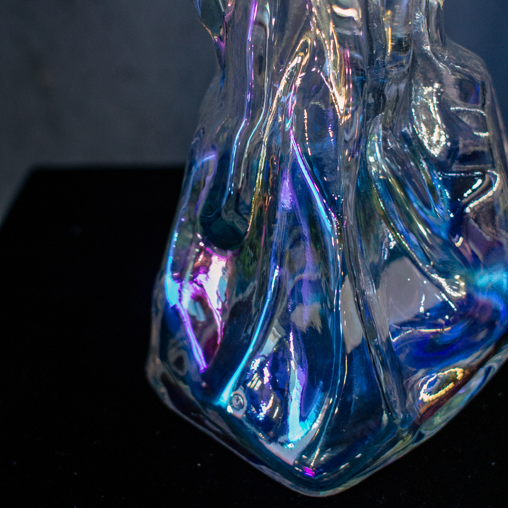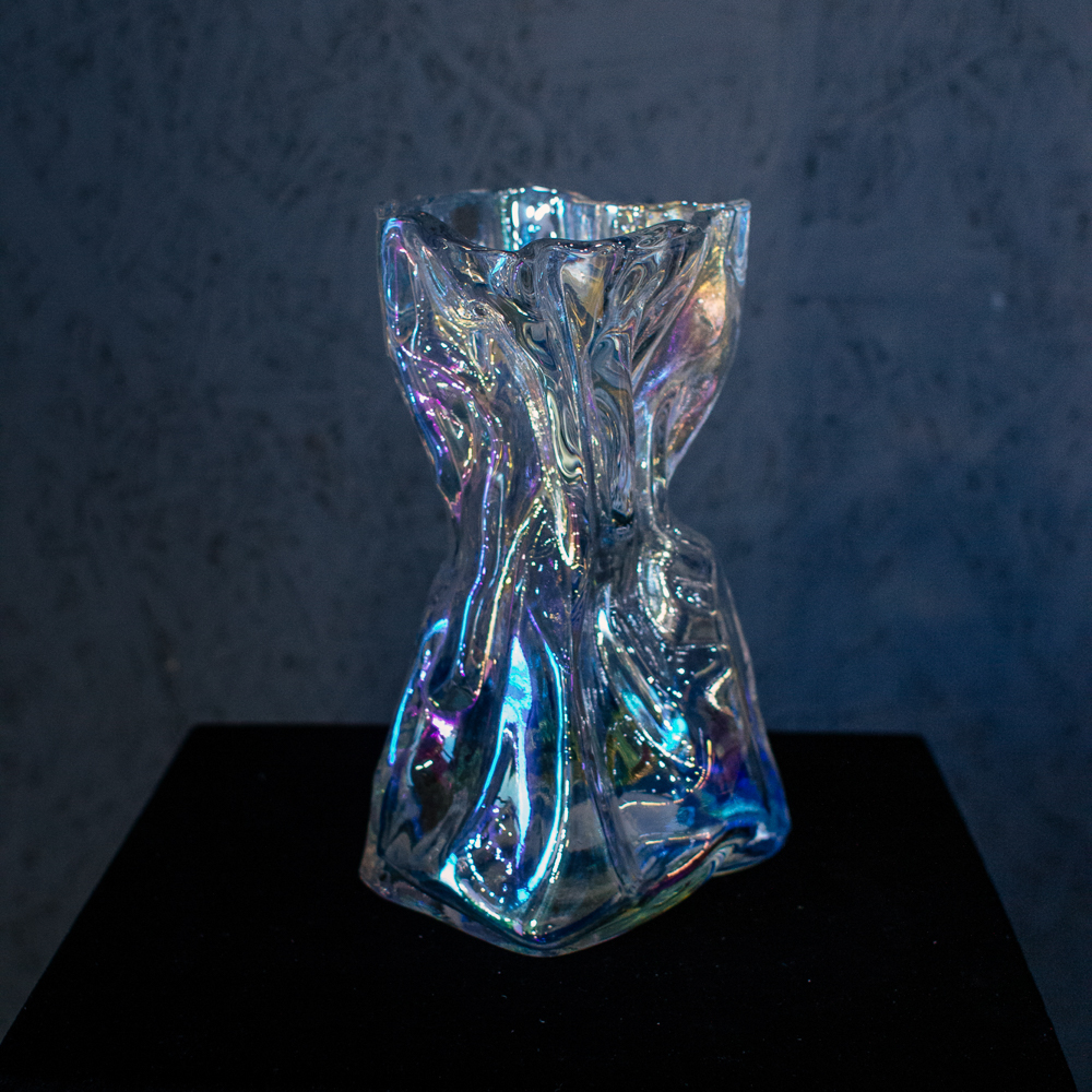 Необычная фактура создаёт ощущение движения и лёгкости. Бензиновый блеск добавляет современный акцент. Подойдёт для любого интерьера; размеры S и M.