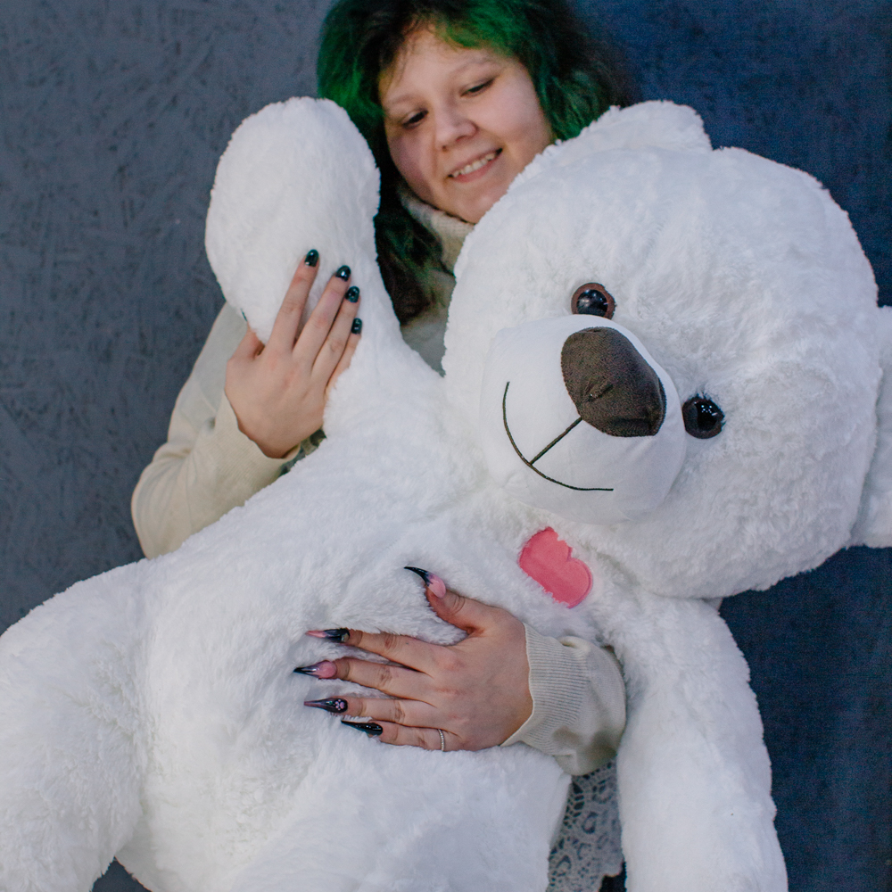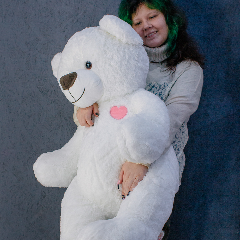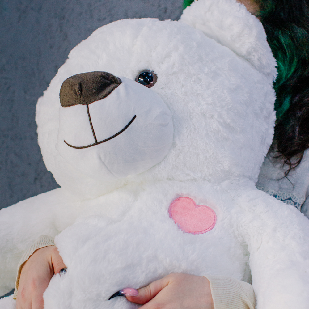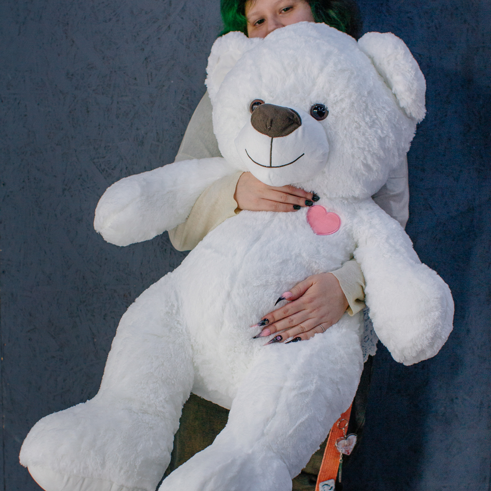Плюшевый медведь 100 см в белоснежном цвете — нежный, аккуратный и трогательный.
