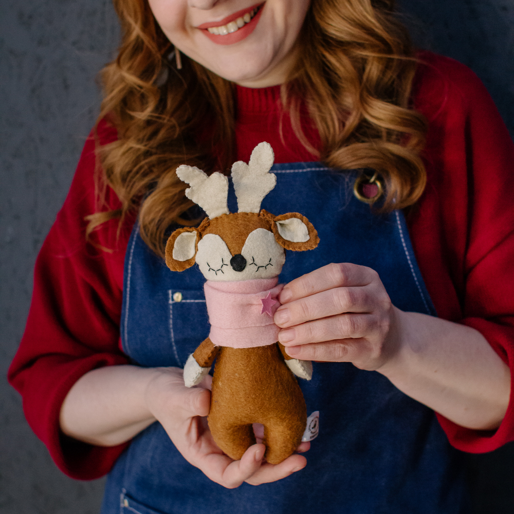 Олень — изящный и немного сказочный, с мягким, добрым взглядом. Добавляет ощущение зимнего уюта и волшебства.