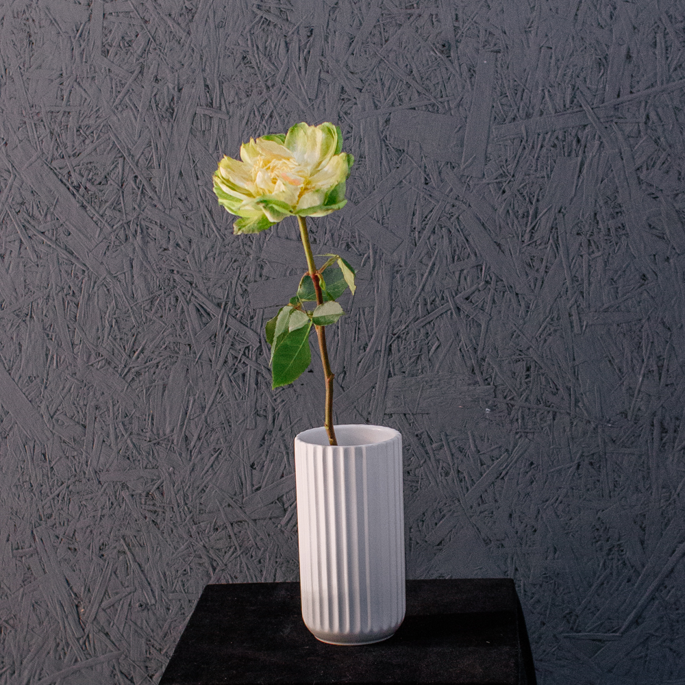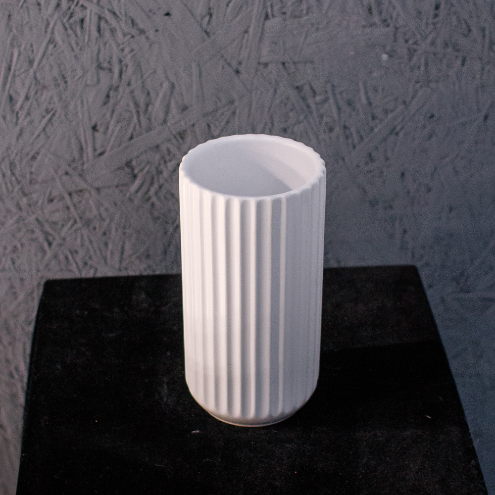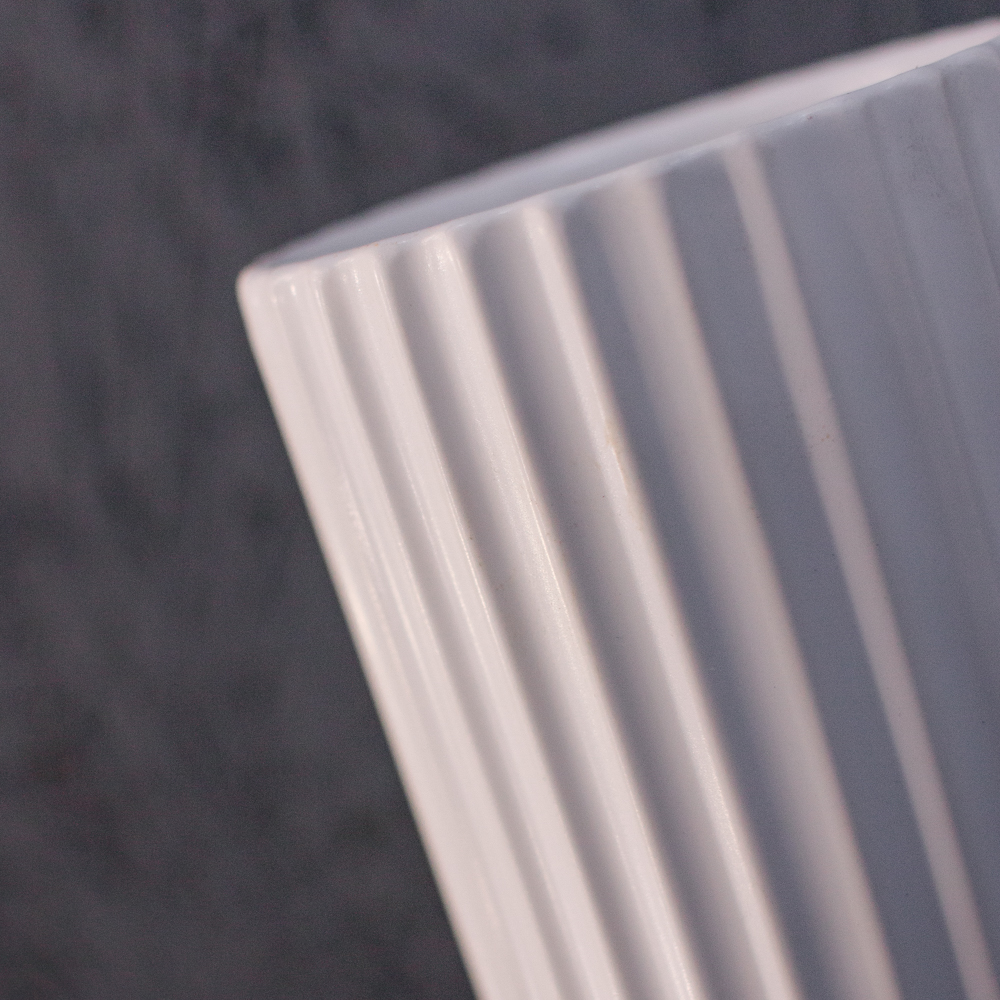 Классическая белая ваза с рельефными полосками, отлично подойдет для сухоцветов и небольших букетов.